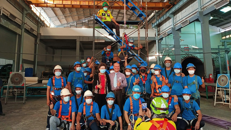 สิ่งปลูกสร้างสมัยนี้ สูงใหญ่ขึ้นเรื่อยๆ อุปกรณ์ ถังผลิตก็มีขนาดสูงขึ้น ชีวิต ร่างกาย อวัยวะ เป็นสิ่งที่มีค่าที่สุดไม่มีอะไหล่ ที.ซี.รับเบอร์ อุตสาหกรรม จึงจัดการฝึกอบรมเป็นประจำเพื่อให้พนักงานมีความชำนาญในการใช้อุปกรณ์รักษาความปลอดภัย วันเสาร์ ที่ 12 พฤศจิกายน 2565 เชิญ บริษัท บลูพลัส เทรนนิ่ง มาฝึกอบรมหลักสูตรการทำงานในที่สูง